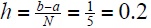 (23)Para ejemplificar el método haremos una corrida de 5 pasos (que es menor que la N mínima calculada con la ecuación (16) que es de N = 6), por lo que la distancia entre pasos es