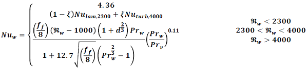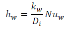 (8)de aquí, kw es la conductividad térmica del agua, Dies el diámetro interno del tubo y Nuw el número de Nusselt del agua el cual depende del tipo de flujo, y se calcula como (Gnielinski, 2013):