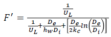 siendo Ares el área del tubo receptor, cpel calor específico de agua y F´ es el factor de eficiencia del colector calculado como: