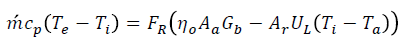 (15)siendo Ti la temperatura inicial del fluido y A el área de apertura de la lámina reflectora. Por lo tanto, la temperatura de salida del fluido queda como: