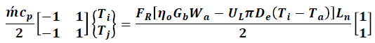 (21)La Ec. 21 representa la temperatura del fluido a lo largo del tubo receptor simplificada para 2 nodos. Para obtener un perfil de temperaturas es necesario trabajar con una mayor cantidad de nodos.