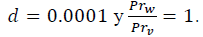 (9)De la Ec. 9, Prwes el número de Prandtl del agua, d es un factor calculado como la razón del diámetro interno de tubo entre su longitud total, Di es el diámetro interno del tubo receptor y es un facot el cual se calcula mediante la Ec. 10.