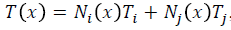y que la temperatura en el nodo i multiplicada por su respectiva longitud nodal, más la temperatura en el nodo j multiplicada por su longitud nodal hasta dicho punto se expresa como