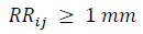 Sea RRij la cantidad diaria de precipitación en el día . en el periodo j. Si nn representa cualquier valor razonable de precipitación diaria entonces, cuente el número de días donde: