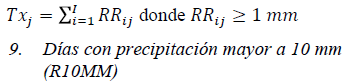 Sea RRij la cantidad diaria de precipitación en el día . en el periodo .. Si representa el número de días en j, entonces: