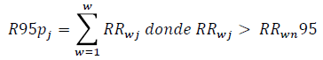 Sea RRwjla cantidad diaria de precipitación en un día húmedo en el periodo y sea RRwn95 el percentil 95th de precipitación en los días húmedos en el periodo 1971-2000. Si . representa el número de días húmedos en el periodo, donde RRwj ≥ 1 mm, entonces: