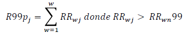 Sea RRwj la cantidad diaria de precipitación en un día húmedo en el periodo . y sea RRwn99 el percentil 99th de precipitación en los días húmedos en el periodo 1971-2000. Si . representa el número de días húmedos en el periodo, donde RRwj ≥ 1 mm, entonces: