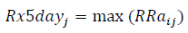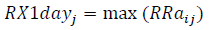 Sea RRij el total diario de precipitación en el día . en el periodo .. Entonces los valores máximos de 1 día para el periodo . son: