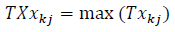 Sea Txkj la temperatura máxima diaria en el mes ., periodo .. La mínima temperatura máxima diaria cada mes es entonces: