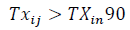 Sea Txij la temperatura máxima diaria en el día . en el periodo . y sea Txin90 el día calendario del percentil 90th centrado en una ventana de 5 días. El porcentaje del tiempo es determinado, donde: