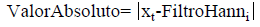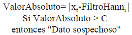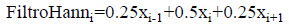El Filtro de Hann toma tres valores de suavizado generados por el algoritmo exponencial para medir la discontinuidad aplican un valor de 0.25 para los valores precedentes y sucesores, y el valor de 0.5 para la observación de que se comparará.