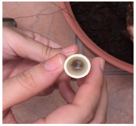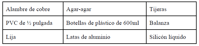 La celda de combustible microbiana tiene 3 partes importantes: los electrones, la membrana selectora de protones o medidor y el cuerpo o estructura de la celda. Para la elaboración de la celda de combustible microbiana, acudimos a diversos viveros con la finalidad de encontrar las plantas adecuadas. La mayoría de los materiales utilizados fueron reciclados, mientras que otros materiales como la silicona y el Agar-Agar, fueron comprados. En la figura 2 se muestra la selección de las plantas (González, 2014).