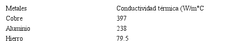 W/m°C: vatios/metro°C)