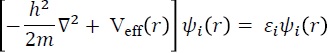 donde Veff es el potencial efectivo que sienten los pseudo-electrones. Estas ecuaciones pueden ser resultas de diferentes formas. La forma de solución está relacionada con la manera en la que es incluido el potencial efectivo, por ejemplo, en el método del enlace fuerte, el potencial se modela de forma empírica; en el método de pseudo-potenciales se obtiene de manera semi-empírica; y por último en los métodos de primeros principios el potencial o ab initio se toma de manera completa.