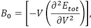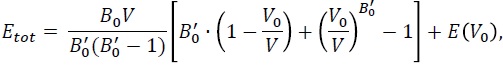 es el módulo de compresibilidad al volumen V0 y B0’ es la derivada del módulo de compresibilidad.