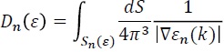 la cual relaciona explícitamente la densidad de los niveles electrónicos y la estructura de bandas εn(k).