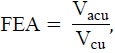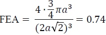 donde Vacu es el volumen que ocupan los átomos en la celda unitaria y Vcu es el volumen de la celda unitaria. Asumiendo simetría esférica en los átomos, el volumen Vacu será igual al número de átomos en la celda unitaria por el volumen de una esfera de radio igual al radio atómico. Para la celda fcc se tiene que la FEA será