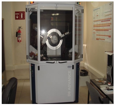 En los Análisis químicos, se contó con un equipo Difractómetro (fig 5) del Centro de Investigación en Micro y Nanotecnología MICRONA, de la Universidad Veracruzana región Veracruz. El equipo tiene las características de este son las siguientes: es un bruker d8-advance con espejo göebel (muestras no planas) con cámara de alta temperatura (hasta 900°C), con un generador de rayos-x Kristalloflex K 760-80F (Potencia: 3000W, Tensión: 20-60KV y Corriente: 5-80mA) y un Seifert modelo Jso-Debyeflex 2002 que está provisto de un cátodo de cobre y un filtro de níquel desde el ordenador se controlan las de condiciones de medida obteniéndose así el difractograma. Se dispone además de una base de datos JCPDS.