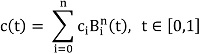 (1)donde los coeficientes ci son puntos del plano, a los cuales se les denomina vértices del polígono de control, {c0, ⋯ , cn} de la Curva de Bézier ci(t) y (t) es el i-ésimo polinomio de Bernstein de grado n. Con la ecuación (1) se puede calcular la curva resultante o interpolada, pero se necesitan los vértices del polígono de control ci para poder obtenerla, los cuales no se conocen; para tal efecto, se parte del hecho que existen n + 1 puntos de una curva que se conocen (posiciones de los marcadores), digamos {a0, ⋯ , an}. Entonces el problema se reduce a encontrar los puntos de control de la curva de grado n que verifique la siguiente condición: