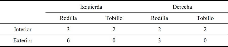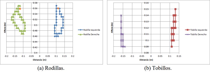 La Tabla 1 muestra los desplazamientos máximos en las articulaciones de ambas piernas sobre el eje x, tomando como origen la posición inicial de las piernas.