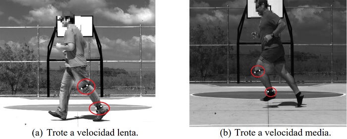 2) Movimientos con desplazamiento: en este caso los movimientos consistieron en un trote lento y en un trote a mayor velocidad (Figura 2a y 2b.)