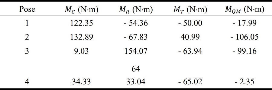 Los valores de la tabla 3, permiten calcular los momentos de fuerza para las articulaciones consideradas, los resultados se muestran en la Tabla 4.
