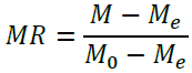 (1)Donde M es el contenido de humedad (el cociente entre el peso del contenido en agua en la muestra fresca y el peso de la muestra después de la sequedad), Me es la humedad de equilibrio (bajo temperatura controlada específica y humedad del aire durante un largo periodo de tiempo), y M0 es la humedad inicial.