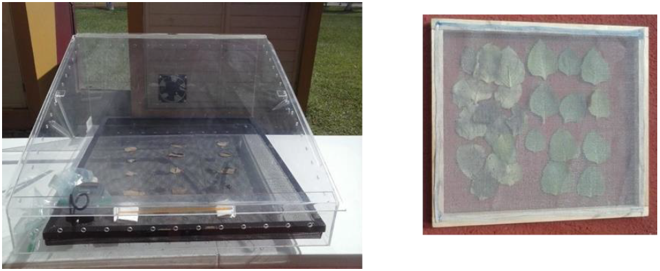 Las pruebas se realizaron simultáneamente utilizando dos DSD. En uno de ellos se cubrió con una malla con filtración solar del 60%. En ambos casos, los secadores solares, se probaron en condiciones ambientales similares.