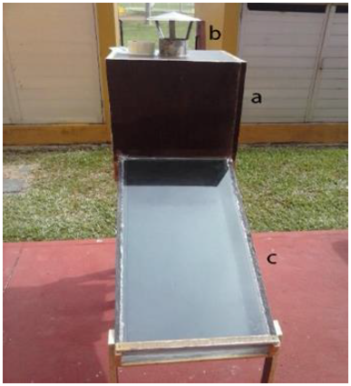 El secador solar indirecto (ISD) consta de a) cámara de secado, b) chimenea y c) colector de aire. La cámara de secado es un túnel rectangular horizontal con una longitud de 0.47 m y una sección transversal de 0.16 m2. Está construido de madera con aislamiento térmico y se divide en tres niveles con tres bandejas para contener el producto a secar Figura 3.