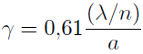 Si se considera que las fuentes luminosas están muy distantes y tienen geometría circular se obtendrá una distribución de un patrón de difracción como se muestra en la Figura 1 sobre la pantalla de observación (Cagnet, 1971). El cálculo por aproximación se realiza con funciones Bessel representando las formas circulares, donde el primer mínimo de una función Bessel tiene un valor minJ1 = 3,83, por lo que (Eugen Hecht, 2015. Tipler, 2003);