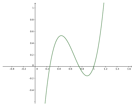 Atividade 4 (Investigando o gráfico de uma função polinomial de grau 3 na forma fatorada). Seja f (x) = (x − 1)(4x − 1)(4x − 3). Esboce o gráfico de f (x) no GeoGebra, digitando no campo de entrada a função f (x) e responda as questões.