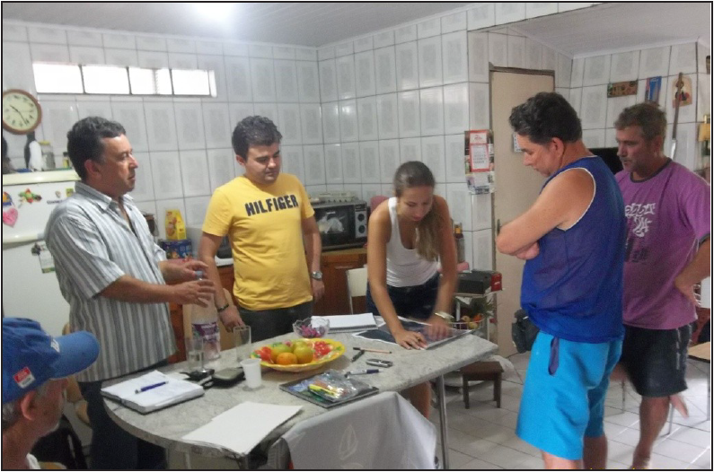 Foram agendadas as visitas para a aplicação das oficinas, com o auxílio de um funcionário pertencente ao escritório da EMATER em Imbé. Logo após o contato, ocorreu a delimitação dos grupos, onde se teve a clareza de que, para escolher os participantes, deveria se considerar a indicação da comunidade, da EMATER, que apresenta grande conhecimento da região e dos representantes do Fórum dos Pescadores do Litoral Norte do Rio Grande do Sul, como estratégia de adquirir pessoas que fornecessem subsídios a componente qualitativa da pesquisa.