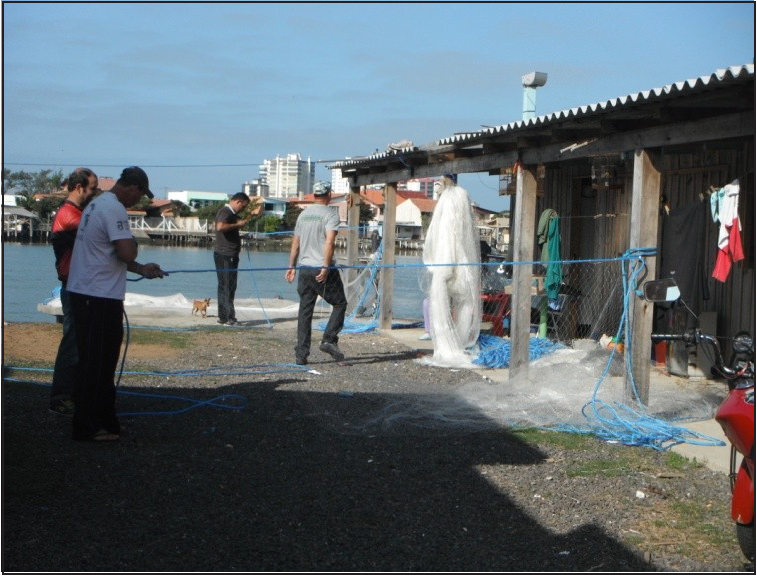 Os pescadores artesanais relatam que os principais petrechos (figura 3) utilizados na área estuarina são: a tarrafa e as redes firmadas nas balizas de pesca. As pescarias ocorrem com maior frequência nas lagoas da Custódia, Armazém e Tramandaí.