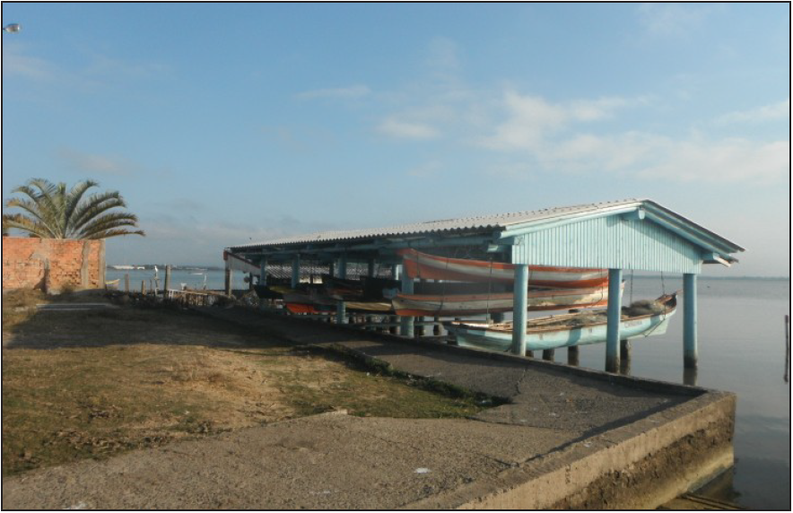 Existem determinados locais na Laguna de Tramandaí onde os pescadores utilizam certos espaços para fazer uma espécie de armazém, onde guardam seus utensílios de pesca.