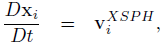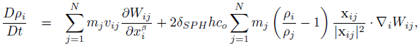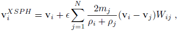 onde viXSPH é a velocidade corrigida e vi a velocidade calculada via integração numérica. Assim, o deslocamento das partículas é calculado usando essa velocidade corrigida.