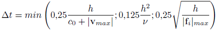 onde δSPH é um parâmetro a ser determinado, geralmente o valor recomendado é 0,1 para a maioria das aplicações.