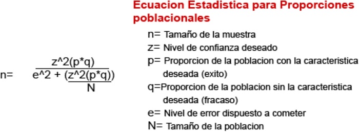 El tamaño de muestra fue determinado por la formula descrita a continuación:
