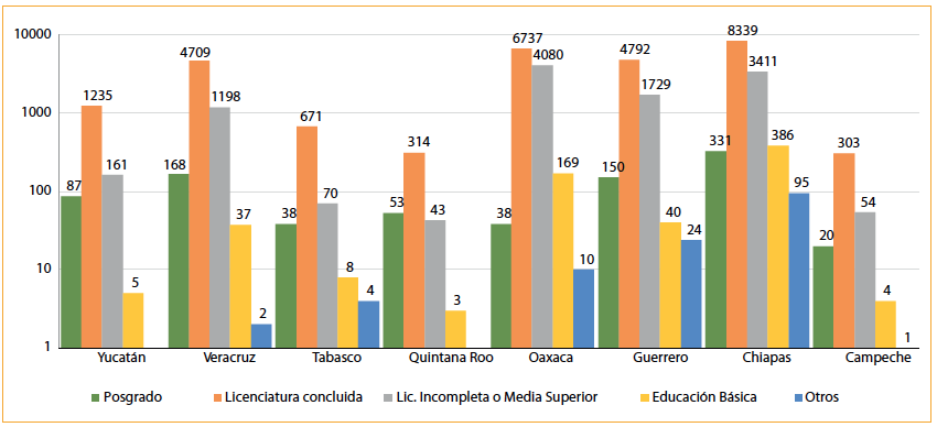 Para que el personal docente pueda enseñar a los alumnos indígenas con calidad y motivación, se requiere una formación docente adecuada y de calidad, así como un ingreso equitativo. Los docentes del sistema educativo indígena cuentan, en promedio, con menos títulos académicos que los maestros del sistema educativo general. En el ciclo escolar 2007-2008, un 15% de los maestros del nivel preescolar indígena y un 13% de los maestros de escuelas primarias indígenas contaban con un título de licenciatura, por el contrario, la mitad del personal docente en el nivel preescolar y primaria del sistema educativo general terminó una licenciatura (51.6% y 50.7%). Estas cifras mejoraron en los últimos años, como se muestra en la gráfica siguiente (INEE, 2015, p. 40, DGEI / Sierra Soler, 2016, p. 20).