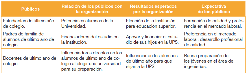 Keywords: Technical carreers, marketing services, public relations, stakeholders.