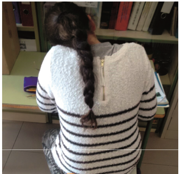 “Maestra 2 (M2): Pues sí, voy comprobando que cuando hago una fotografía es por dos razones. Una, porque en ese instante ocurre algo que no entiendo de lo que está pasando o de lo que veo en clase. Un ejemplo de esto que digo fue cuando la niña de la foto de espalda que lleva dos años de retraso curricular (ver fotografía 2) está sentada en una silla que le viene pequeña. Con esa fotografía quise plasmar esa anomalía, ese contraste.