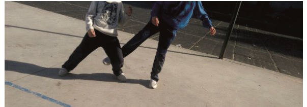 M2: Sí, la segunda razón, responde a las impresiones y emociones que noto en un momento. Por ejemplo, cuando estaba vigilando el recreo y vi que X e Y (alumnos) se estaban dando patadas (ver fotografía 3), sentí esa violencia y la grabé encuadrando las piernas en diagonal, inclinadas, cruzadas”. (Fragmento de la sesión del día 11/02/2016).