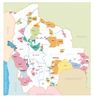 Bolivia es uno de los países más biodiversos del mundo, la profusión encarna también en la variedad étnica, cultural y lingüística. Una clasificación básica de la composición geográfica distribuye su territorio en “tierras altas” (puna, altiplano y valles) y “tierras bajas” (Amazonía, chaco y llanos orientales). Comparando ambas extensiones, el 60% del territorio corresponde a la región de la Amazonía (Rivero, 2014), por tanto más que país andino debe ser considerado amazónico. La población total del país asciende a 10 457 329 habitantes, de los cuales el 44% es indígena (INE, 2011), porcentaje cuestionado por la reducción drástica respecto del censo 2001 donde el 62% se auto-identificaba como indígena. Bolivia reconoce 36 nacionalidades indígenas, cinco habitan ancestralmente en tierras altas: El resto, 31 están localizados en tierras bajas. Esto indica una mayor concentración de la diversidad étnica, cultural y lingüística en tierras bajas