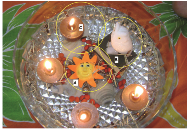 En la segunda etapa de la actividad, hay la descripción oral por parte del sujeto de la simbología de cada parte del escenario, momento en el cual ocurre la reflexión sobre el proceso creativo, porque “primero se vive, se experimenta, se elabora y después se nombra y se proclama” (Gadotti, 2000, p. 94). El objetivo de esta etapa es establecer conexiones con uno mismo (autoformación), con el otro (heteroformación) y con los saberes del mundo (ecoformación). Los participantes forman un círculo porque, según Tuan (2012), el círculo es el símbolo junguiano que otorga reconciliación de los opuestos para que se obtenga la totalidad y la harmonía.