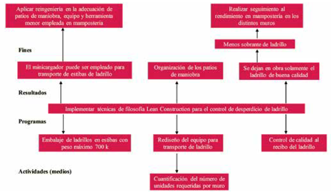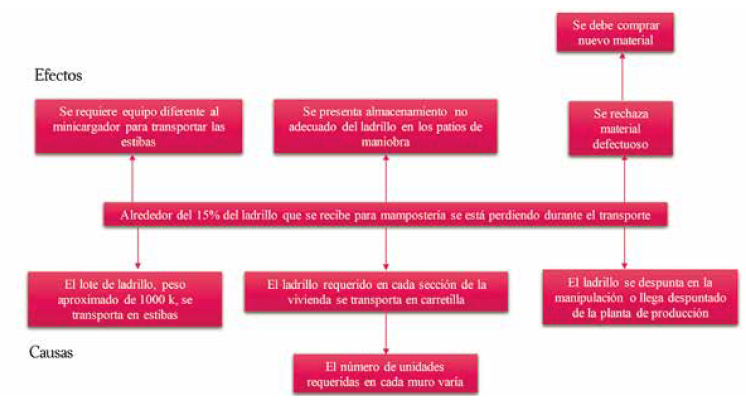 Descripción: Esta actividad se realiza luego de la visita de campo. El docente orienta a los estudiantes sobre la importancia de la observación para identificación de factores que afectan el rendimiento en la actividad de mampostería. En la visita de campo, el grupo de trabajo debe registrar las causas de la pérdida de materiales y de tiempo en la actividad de mampostería en una empresa constructora. Se elabora el árbol de causas y efectos en una infografía similar a la Figura 1.