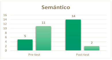 La aplicación del test que evalúo el aspecto semántico, dio a conocer el avance en el vocabulario de los conceptos de sol, luna, planeta Tierra, planeta Marte, planeta Saturno, constelación, estrella y cometa. A continuación, se examinarán los resultados obtenidos del pre y pos test.