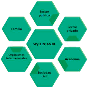 Por su parte, el Instituto Mexicano para la Competitividad (IMCO, 2017), destaca la necesidad de contar con una visión integral del problema y de las acciones a emprender, que requiere del apoyo multisectorial y multigubernamental. En la figura 1 se pueden observar los actores sociales corresponsables en la disminución y prevención del SPyO.