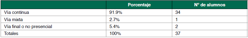 En la tabla 4 presentamos el número de alumnos que han optado por cada vía de aprendizaje y evaluación: