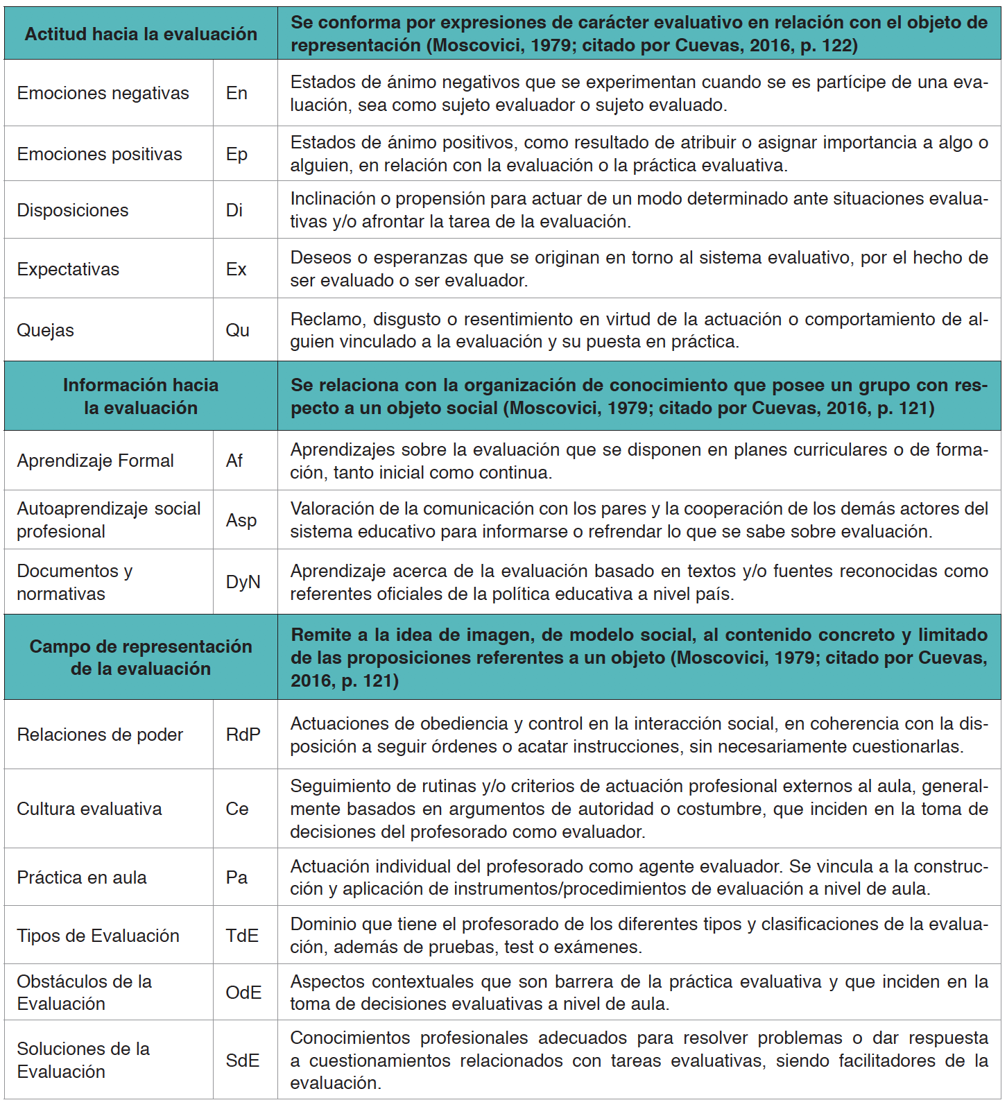 En este contexto, Castorina (2017) señala que el estudio de las representaciones sociales ha sido atractivo para la indagación de diversos temas en el campo de la Educación, tales como la identidad del profesional docente o los saberes docentes. En el caso de este estudio, se destaca el trabajo de Gil- Rojas (2019) quien reconoce a la evaluación del aprendizaje como un objeto representacional, puesto que corresponde a una forma de conocimiento social, es una construcción social e histórica y toma como base conocimientos colectivos. De este modo, la evaluación puede ser descrita como práctica social y como juicio de valor sobre un proceso educativo, desde cuya mirada se abordó esta investigación.