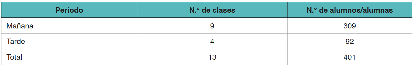 En el ciclo escolar 2019, la escuela donde se desarrolló el proyecto contaba con cuatrocientos un (401) alumnos/alumnas inscritos/as en la secundaria regular, distribuidos de acuerdo con la siguiente tabla.