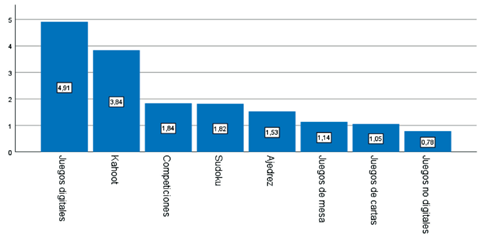 En relación con el uso de juegos en las sesiones de matemáticas, el alumnado no aprecia que el profesorado utilice juegos, tanto analógicos como digitales, en el aula. Tampoco poseen un conocimiento sobre juegos que favorezcan la adquisición de los contenidos de la asignatura de matemáticas. Hacen mención a aplicaciones como Kahoot, que son utilizadas de forma esporádica en algún momento del proceso de formación. Por otro lado, el profesorado afirma conocer diferentes tipos de juegos como medio para facilitar el aprendizaje de los conceptos del área. Señalan juegos como las adivinanzas, competición entre equipos, concursos, entre otros. Este tipo de actividades gamificadas, como indican Tomislav et al. (2018), incrementan el rendimiento en relación con el aprendizaje de los conceptos matemáticos concretos.